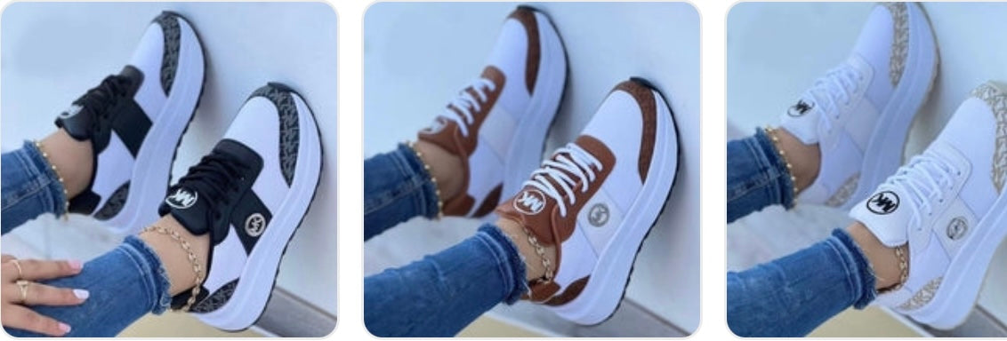 Casual Lace-up Sports Shoes Thick-soled Color-blocked Round-toe Sneakers Outdoor Casual Walking Running Shoes